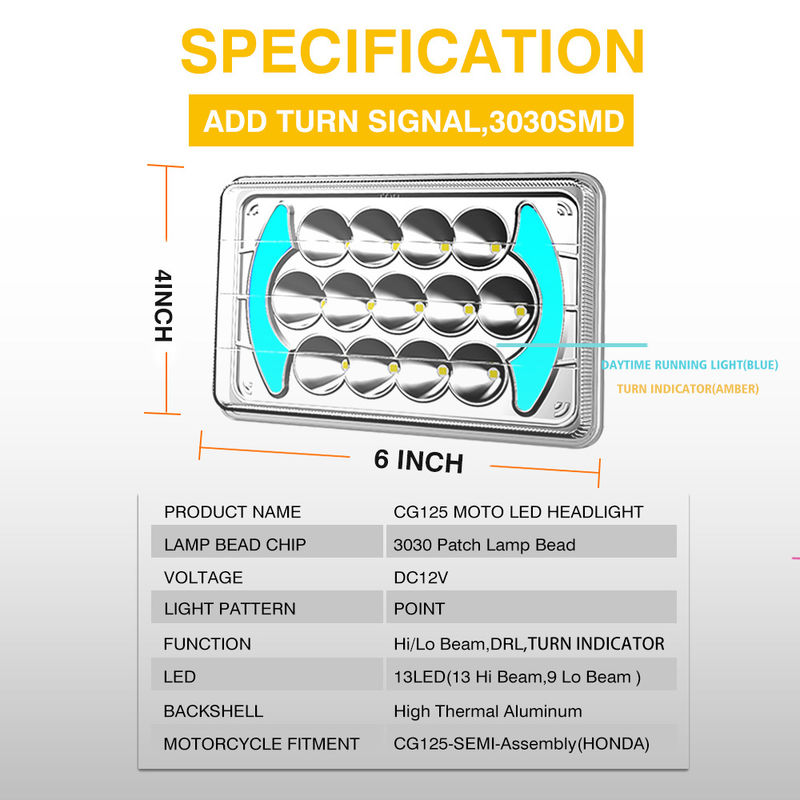 | प्रमुखता देना: | डीआरएल के साथ सीजी 125 एलईडी हेडलाइट बल्ब,मोड़ संकेत के साथ CG125 मोटरसाइकिल हेडलाइट,CD70 CG125 एलईडी हेडलाइट बल्ब |