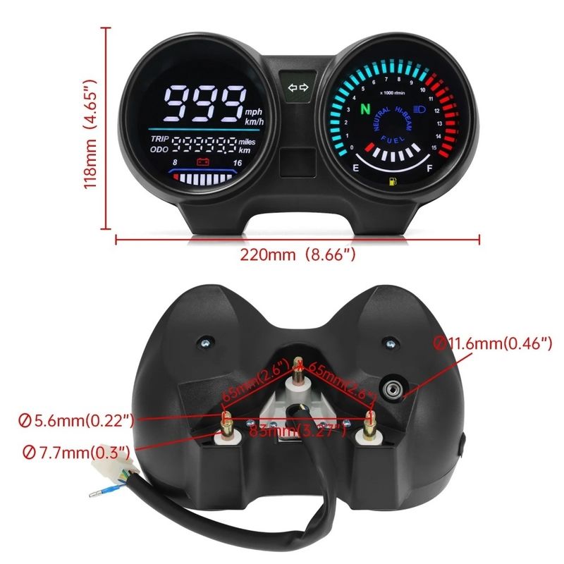 | गति प्रदर्शन रेंज | 0-120 किमी/घंटा |