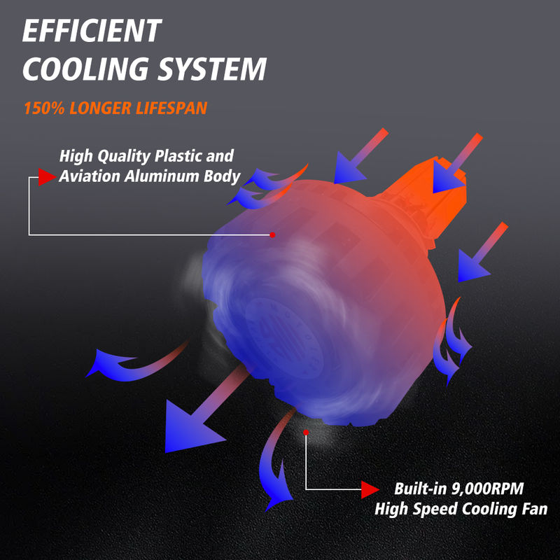 9,000 आरपीएम के साथ उच्च गति मूक प्रशंसक और खोल के पंख डिजाइन एक प्रभावी शीतलन प्रणाली, IP67 जलरोधक, 50 से अधिक का गठन किया,000