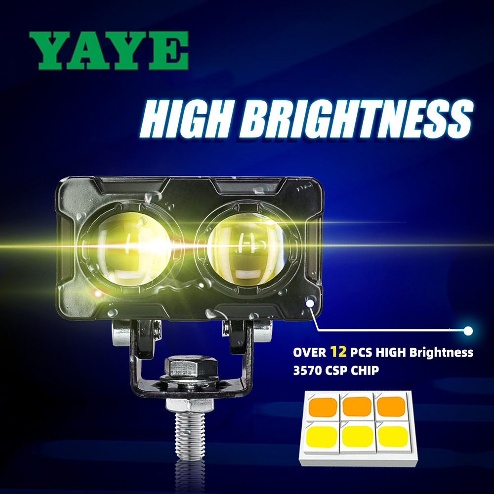 YAYE एक्सप्लोरर मोटरसाइकिल लाइट मिनी स्पॉट लाइट एलईडी डुअल प्रोजेक्टर लेंस पीला सफेद 20W 2000LM 20
